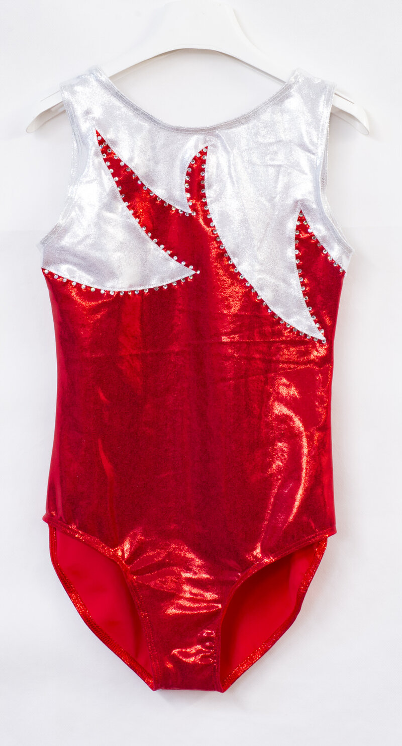 Body in lurex rosso con riporti in lurex bianco, senza maniche, rifinito con strass crystal.